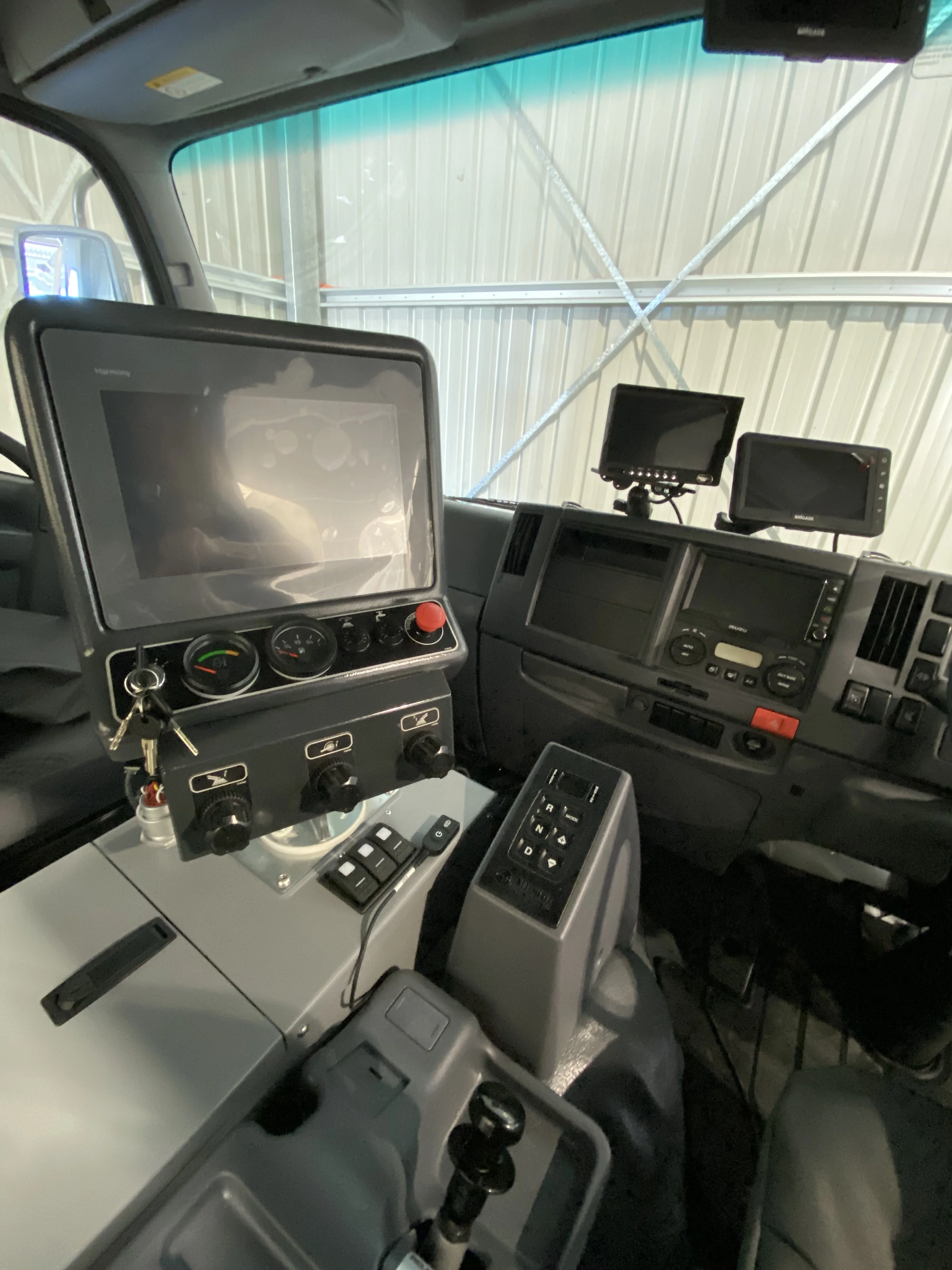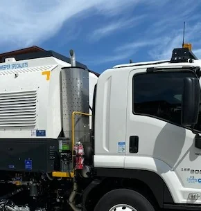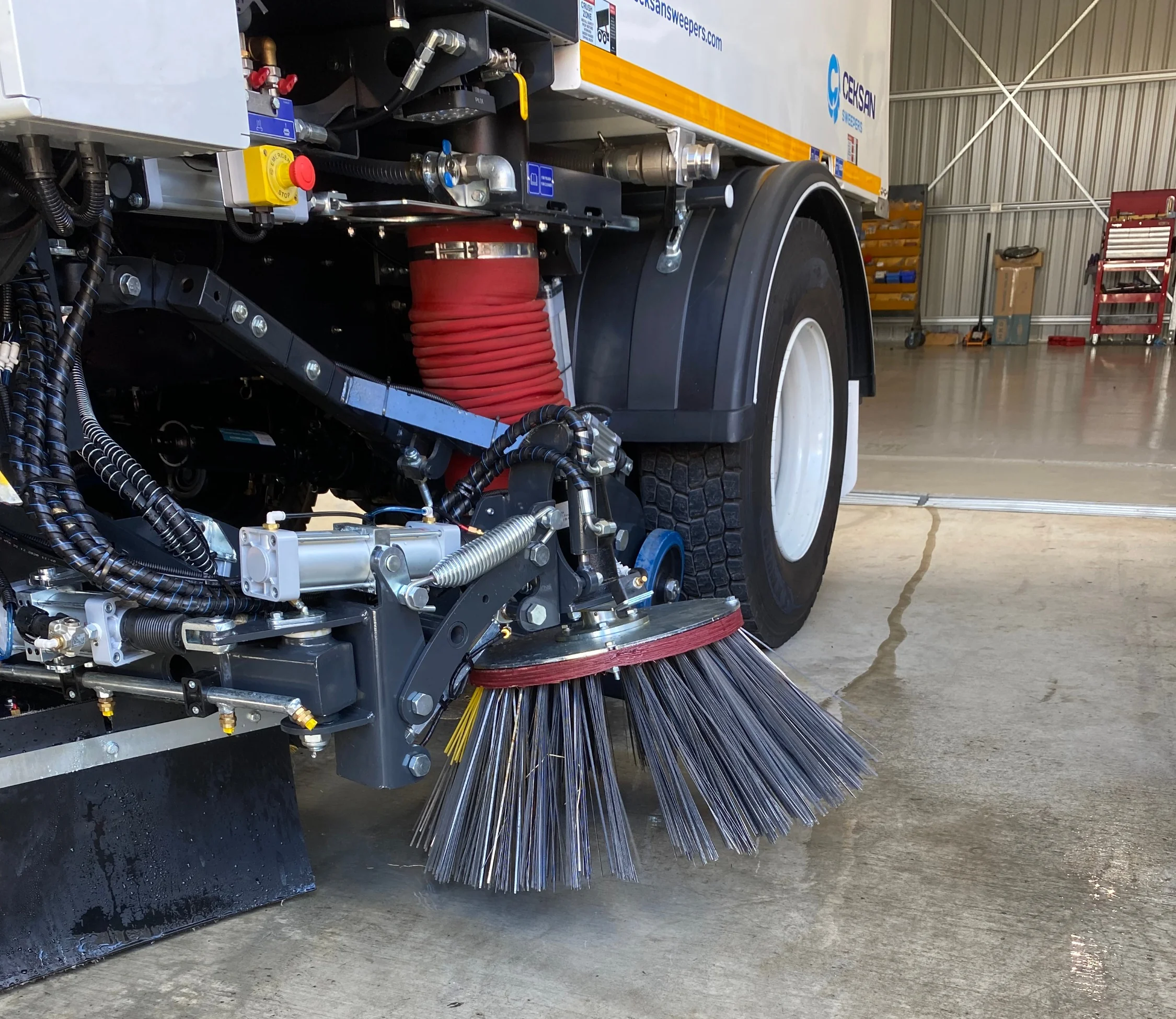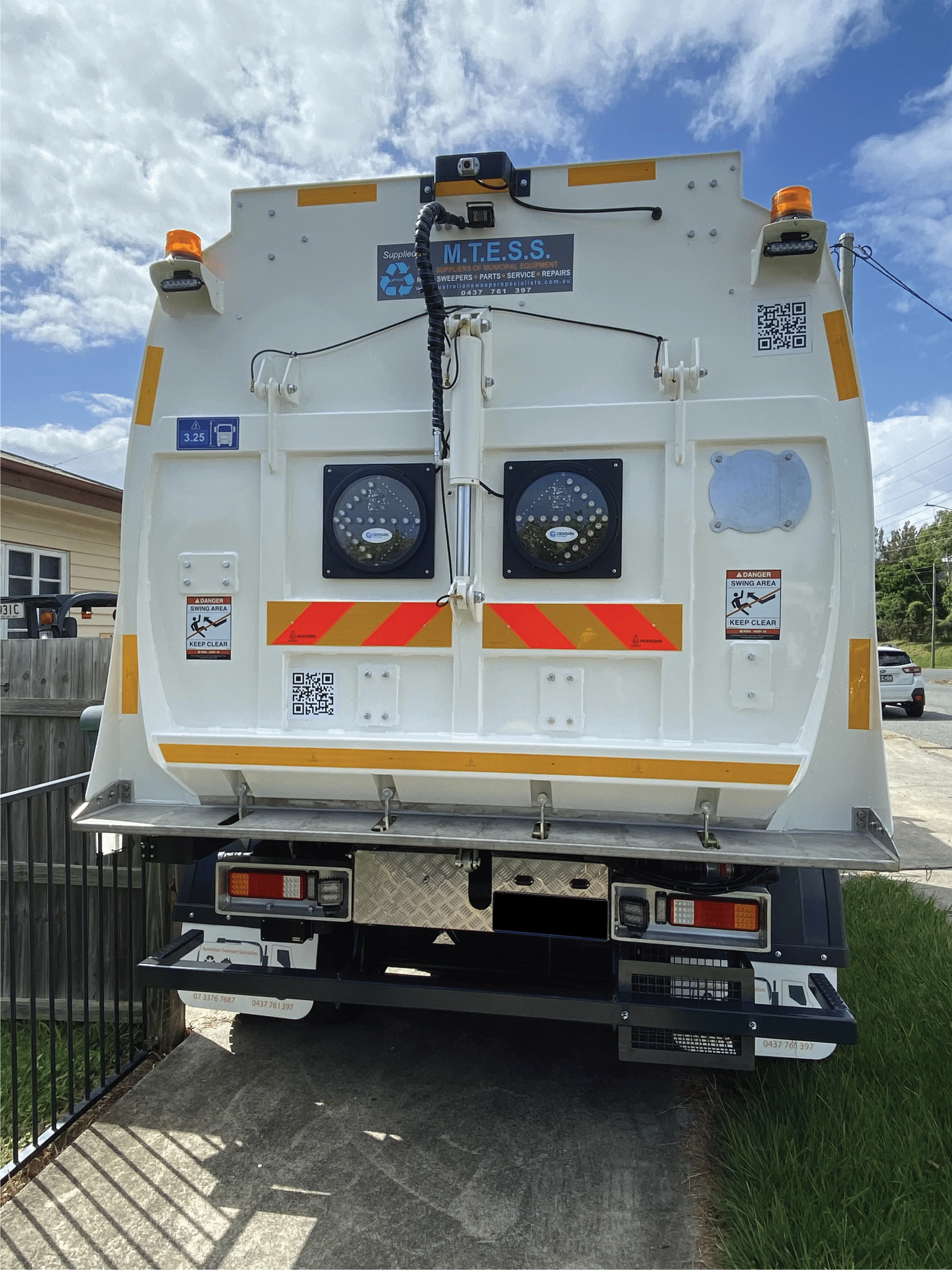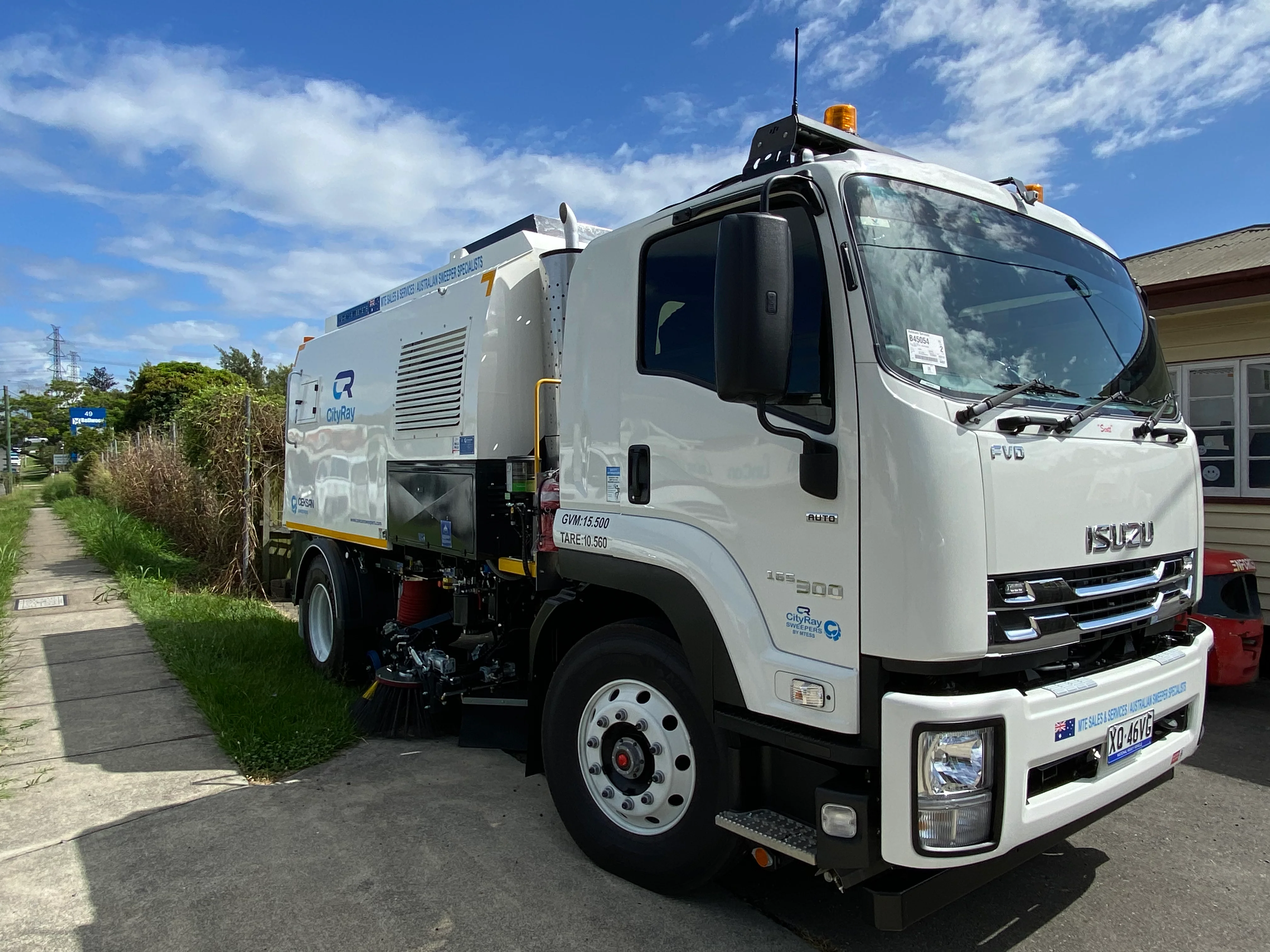 BMI Group selected an Isuzu FVD 165-300 15.5 tonne chassis paired with a CityRay 5 hopper to create a custom road sweeper. Key additions included a 360-camera system, auto greasing system, UHF radio, venturi system, and screen vibrator.