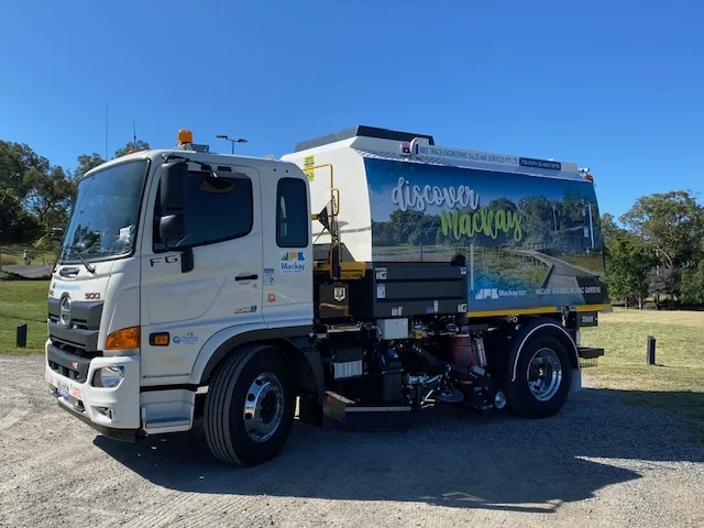The CityRay sweeper demonstrates adaptability across multiple chassis types. This CityRay for Mackay Regional Council was mounted on a Hino FG chassis and showcases the same quality as comparable builds.
